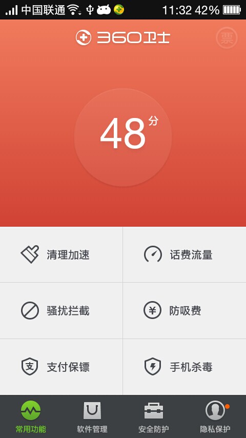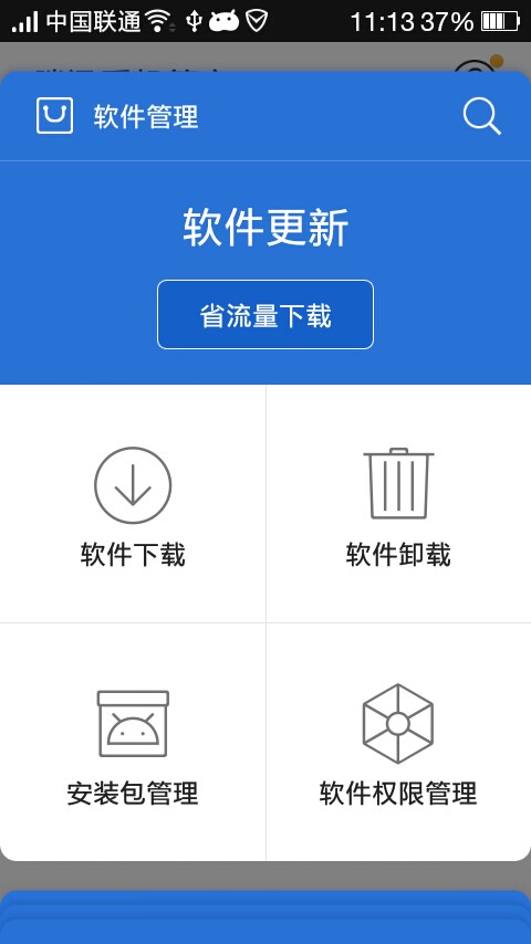 1. 点击打开“腾讯手机管家”,出现下图界面,点击软件管理。