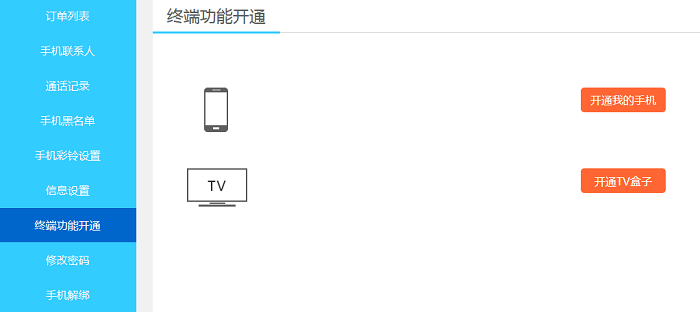 (1)进入【用户中心】→点击左侧【终端功能开通】→选择【开通我的手机】