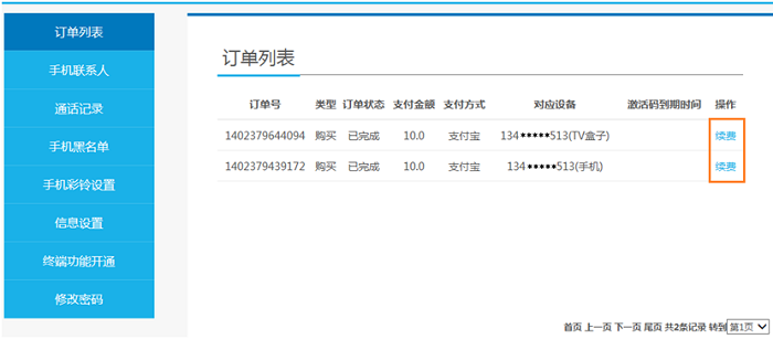 (1)进入【用户中心】→点击左侧【订单列表】→选择订单点击【续费】