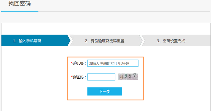 (2)按照提示输入手机号、验证码→点击【下一步】