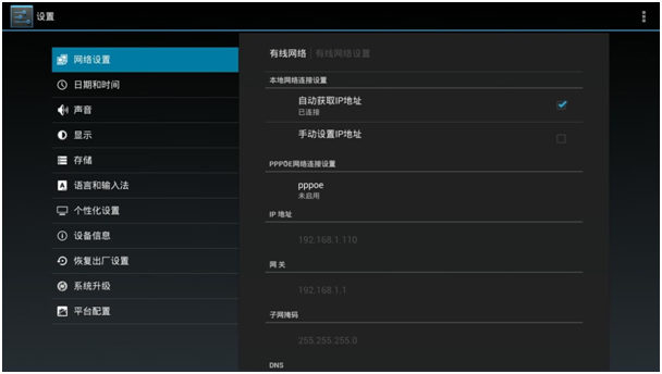 互联网机顶盒通过网线连接的路由器,请在网络设置—有线网络里,选择自动获取IP地址。提示已连接,表示网络连接成功。