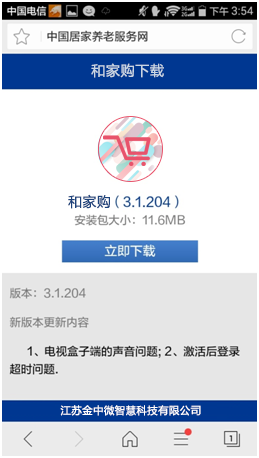 (1)登录中国居家养老服务网http://www.hhth.cn,进入下载页面,选择对应版本下载安装,手机端可直接扫描二维码进行下载。