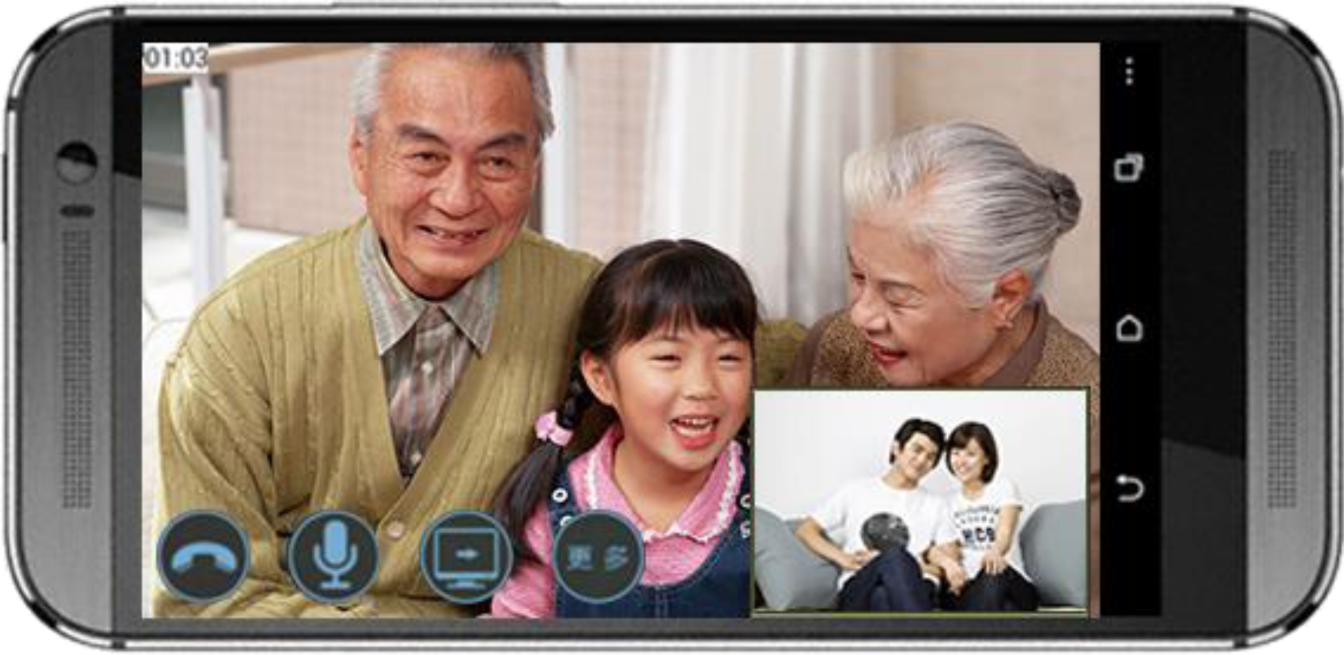 手机端绑定TV端后,视频通话过程中可将画面切换至TV端电视上,这也是我公司的独有技术,具有转换快速、画面清晰的特点。