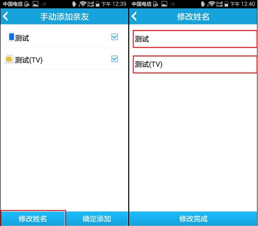 3、根据添加号码显示手机端和TV端号码,可修改号码名称或直接添加。