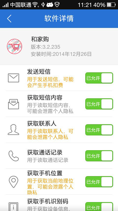 3. 点击软件权限管理后出现软件列表,找到和家购后点击